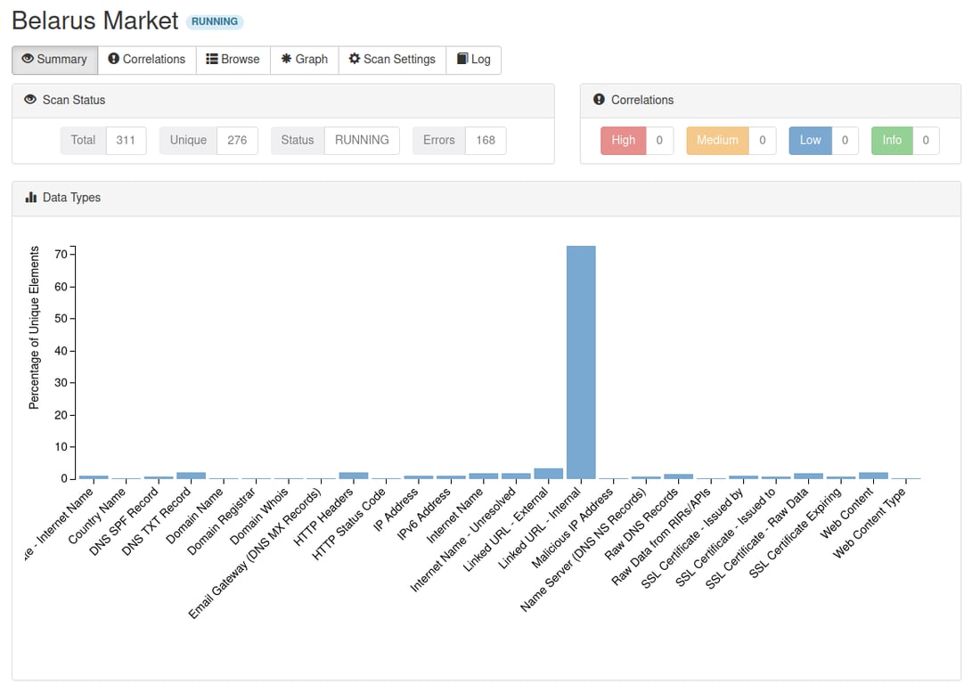 Spiderfoot OSINT Scan for Reporting